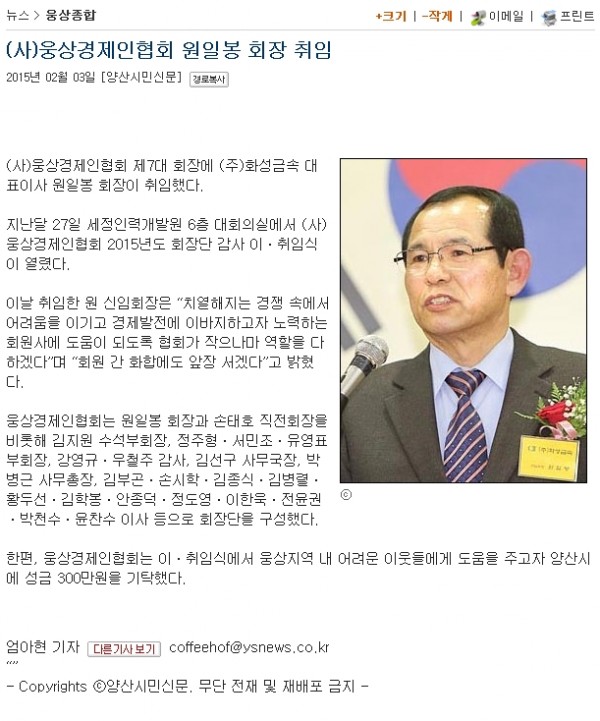 (자)웅상 경제인협회 제7대 회장 취임